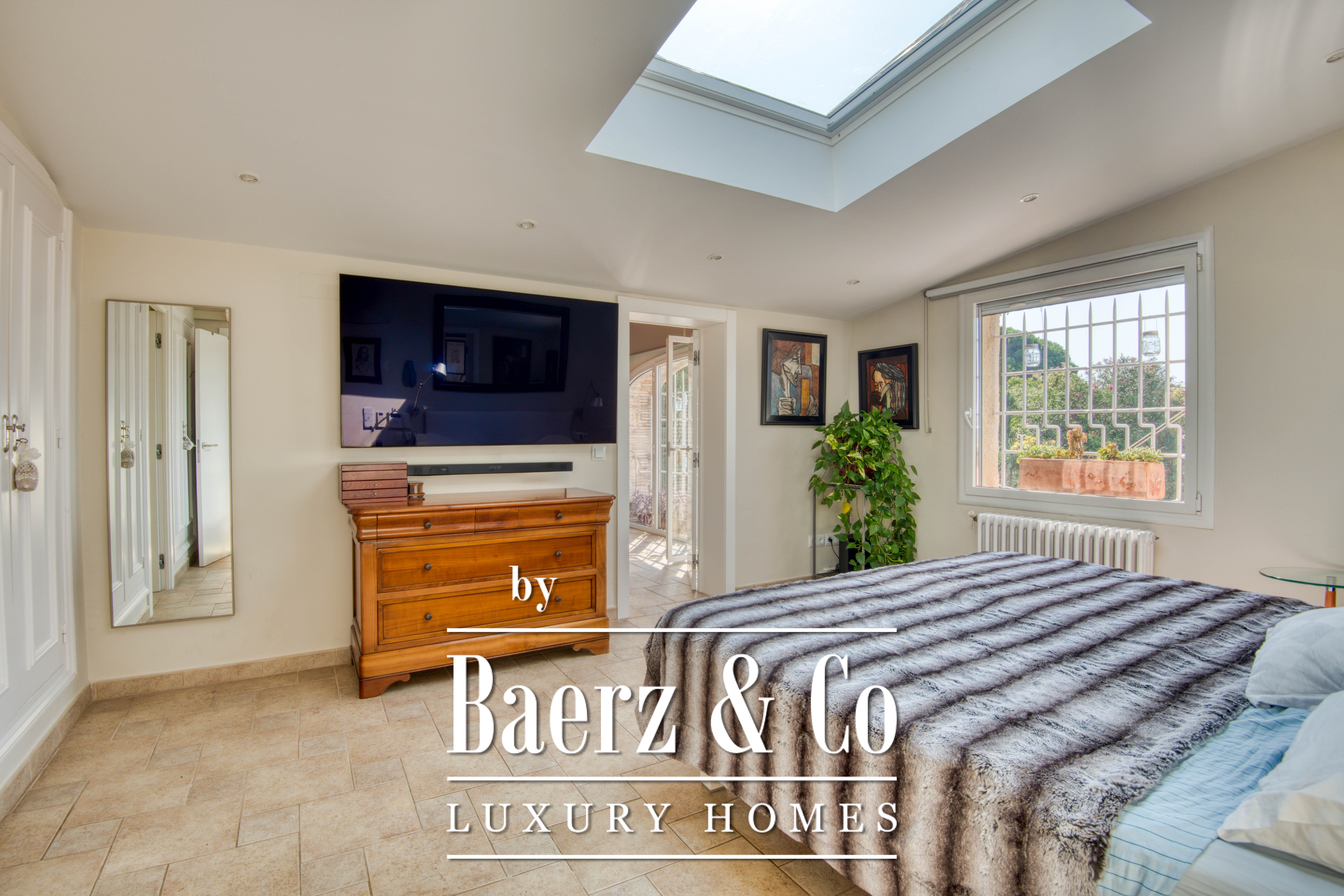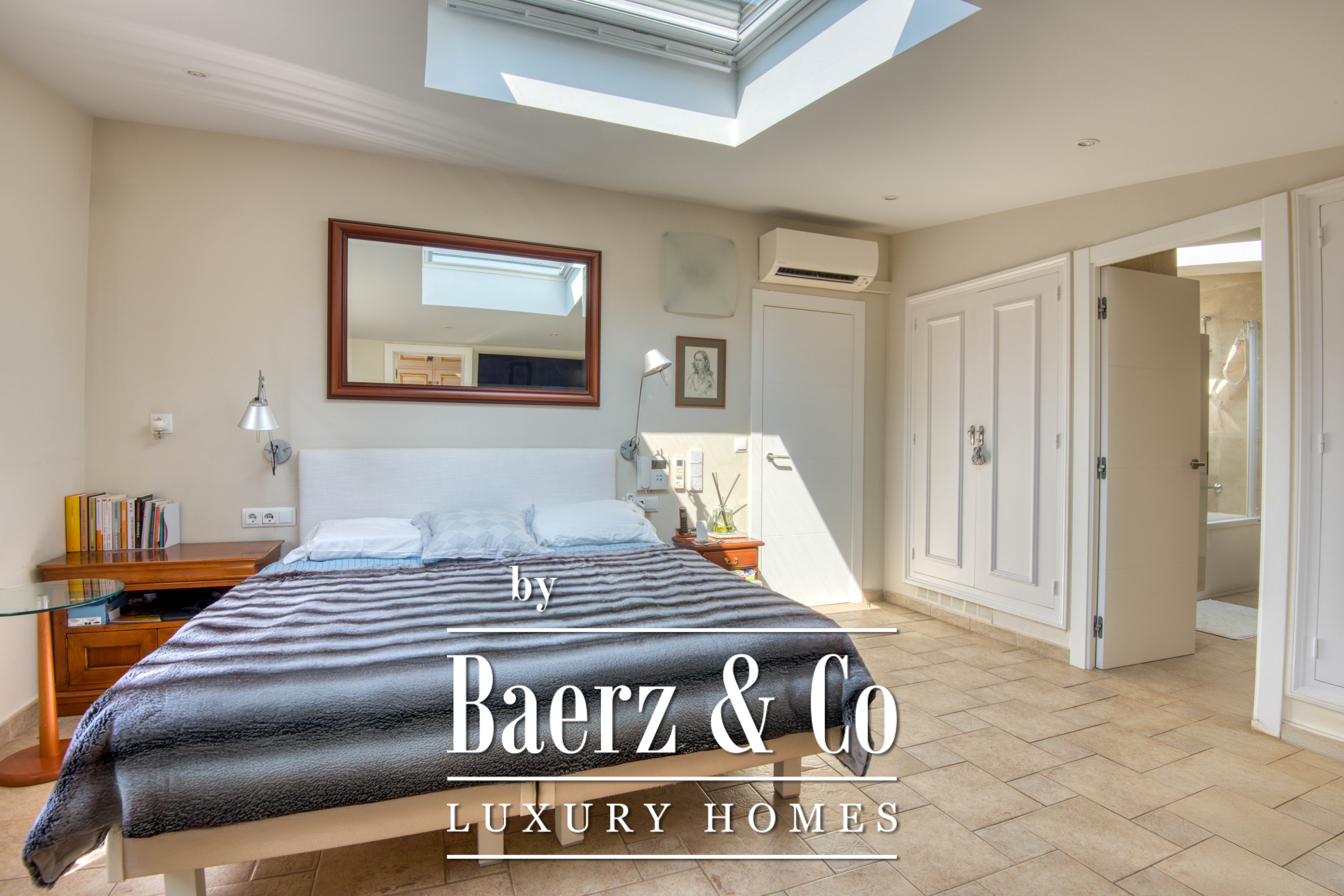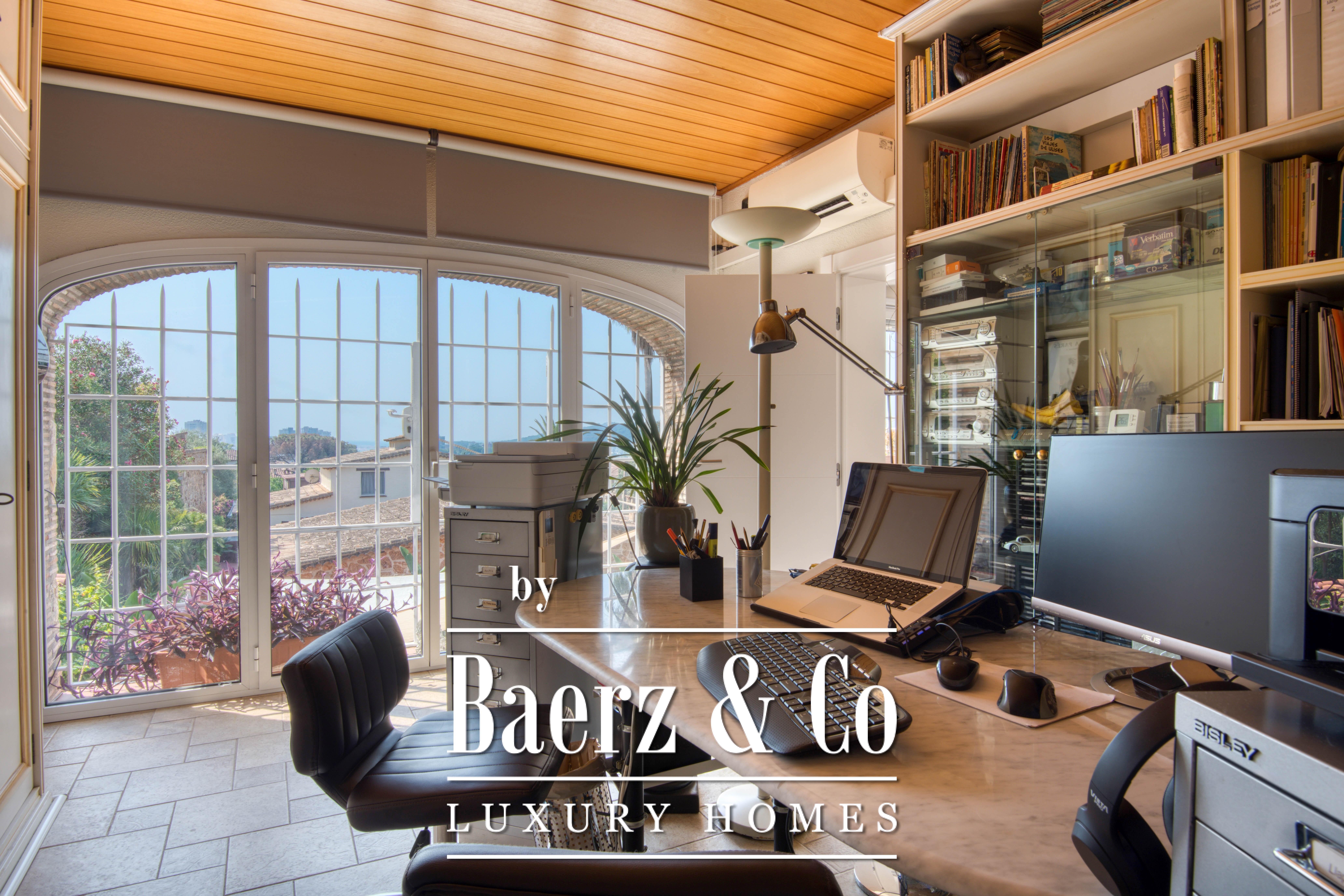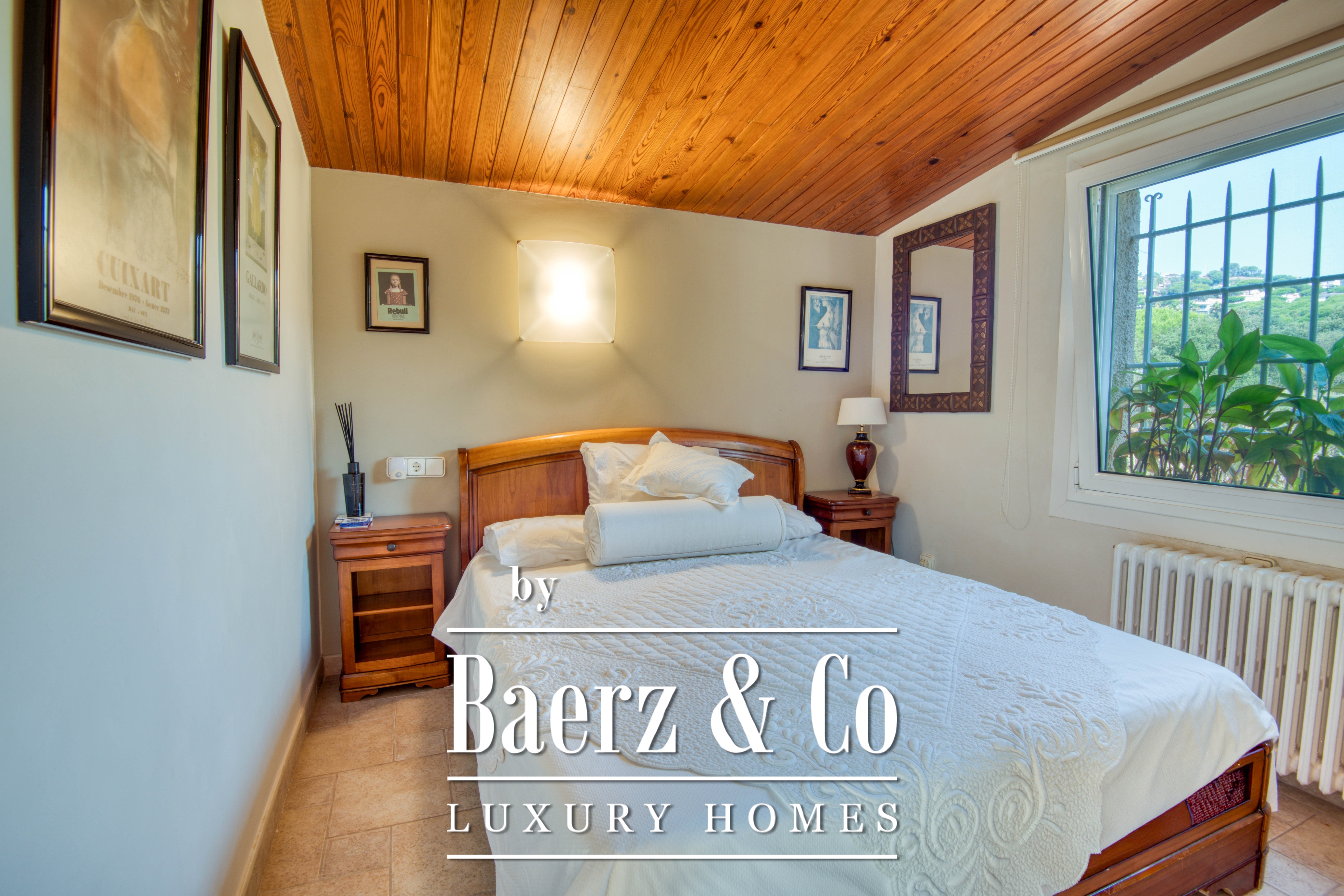 Наверху две спальни с двуспальными кроватями и индивидуальными шкафами, а также полноценная ванная комната делят этаж с главным люксом. Основная спальня располагает гардеробной, отдельной ванной, рабочим кабинетом и эксклюзивным выходом на террасу с захватывающим видом на окрестности Platja d’Aro.