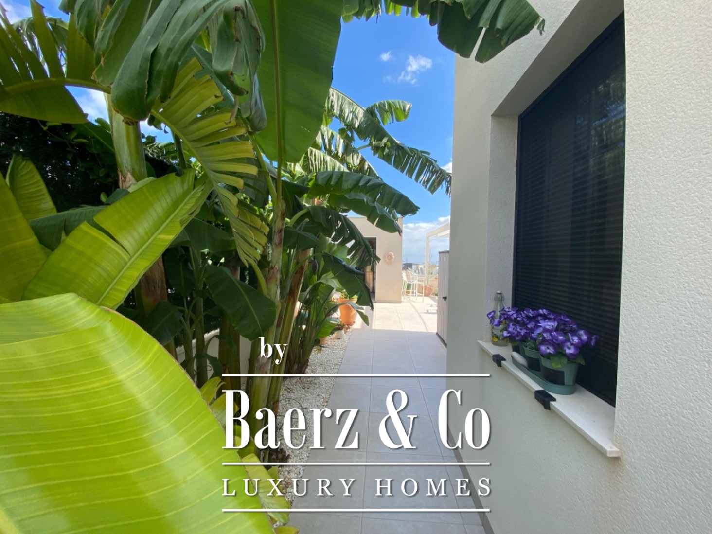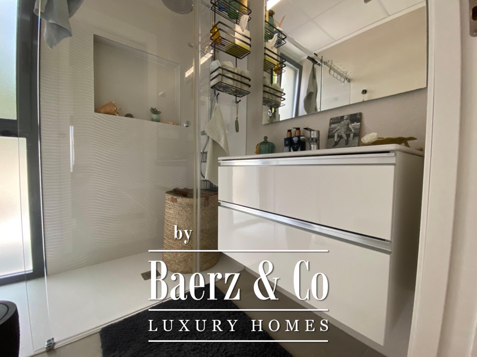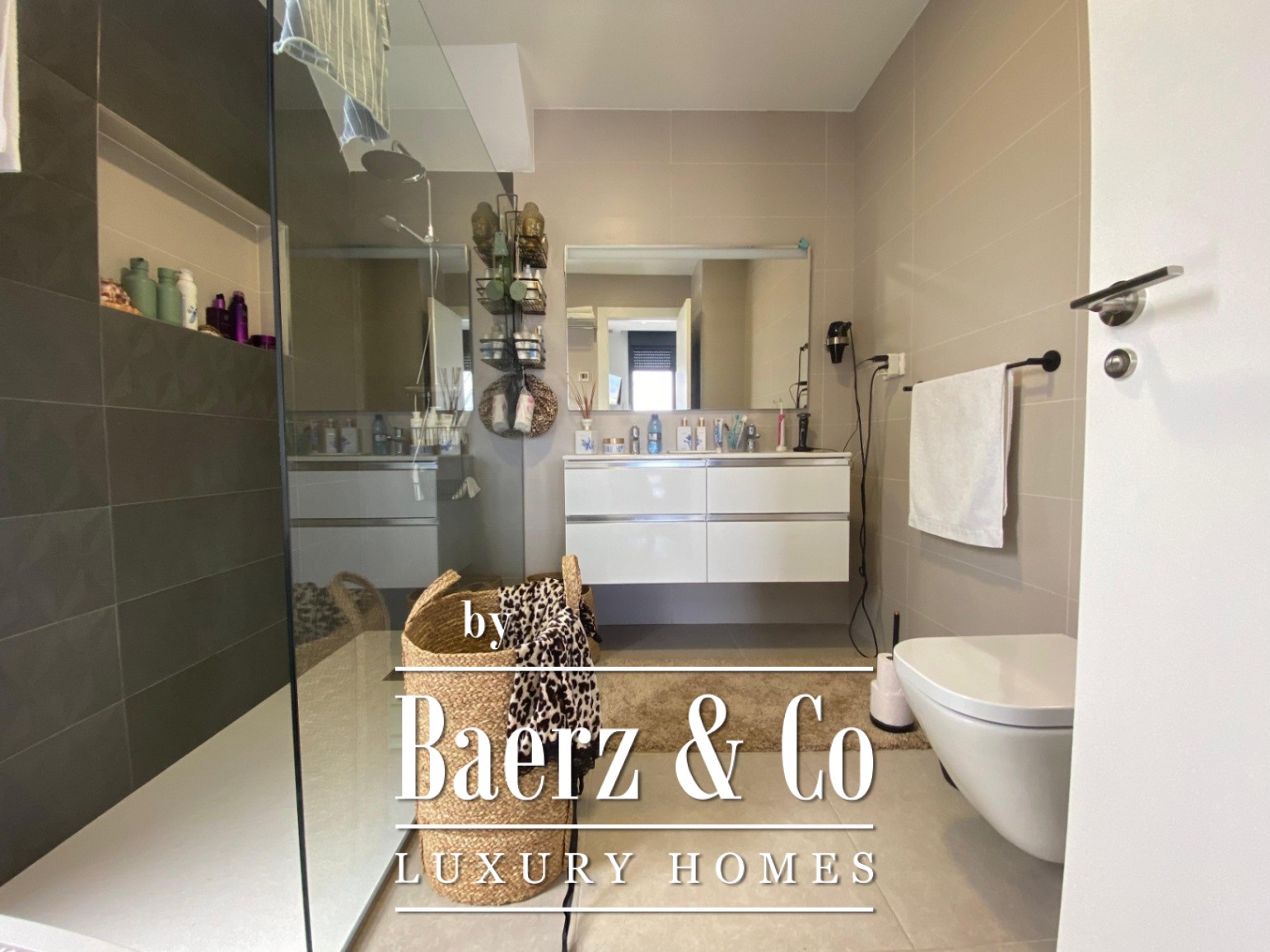 На нижнем уровне располагается отдельная квартира для гостей с двумя спальнями, ванной комнатой и собственной жилой зоной—идеальное пространство для приёма гостей с сохранением приватности. По всему дому установлены системы кондиционирования воздуха, централизованное электрическое отопление и окна с двойным остеклением и москитными сетками, что обеспечивает комфорт в любое время года.