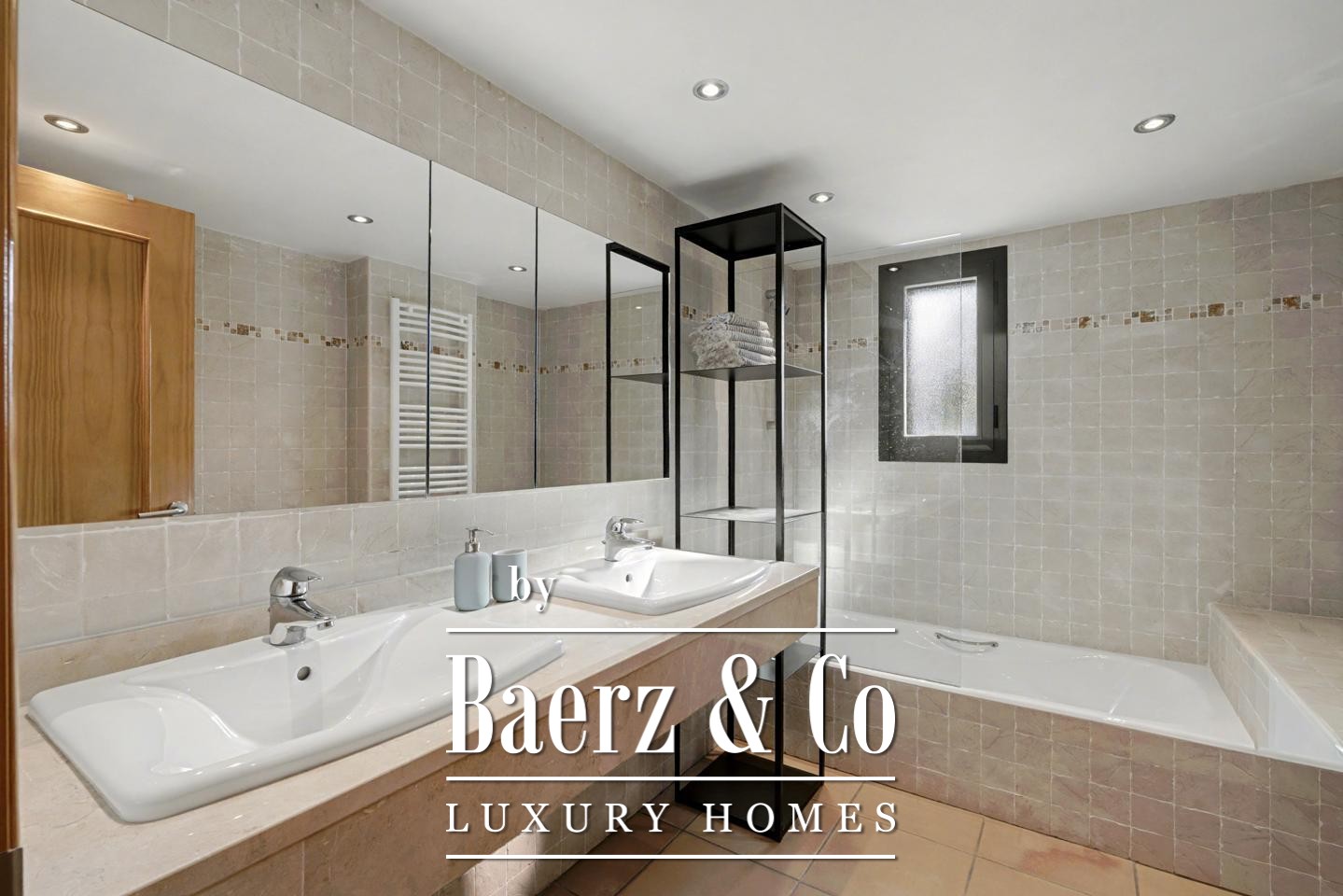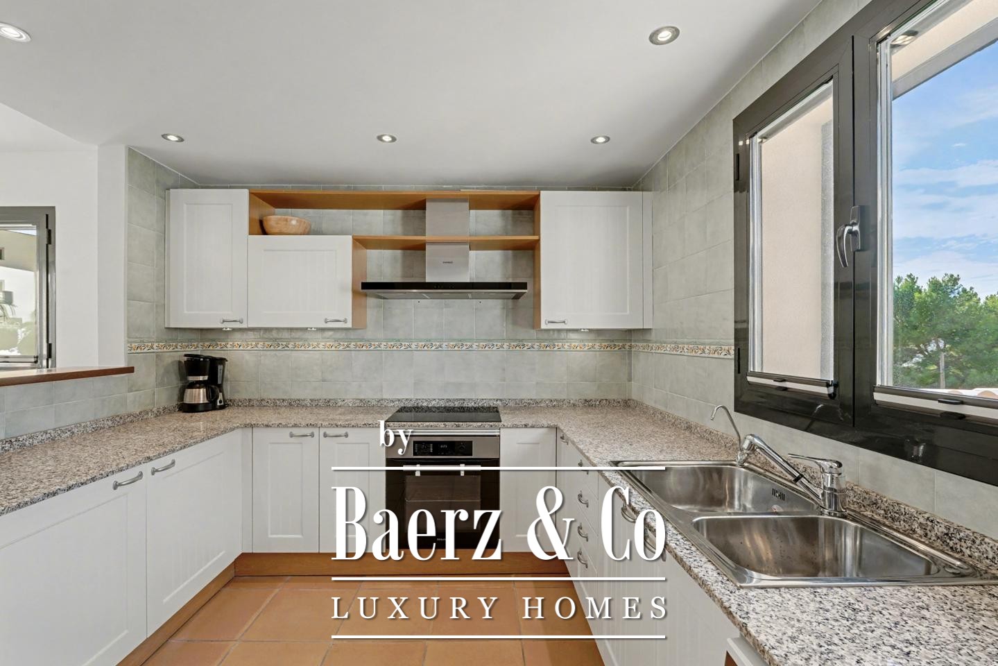 Просторный холл встречает гостей изысканными, светлыми интерьерами. Гостиная с камином выходит на террасу, с которой море становится постоянным спутником. Кухня открытого типа с обеденной зоной переходит на вторую террасу для отдыха на свежем воздухе, которую соединяет внешняя лестница с общими средиземноморскими садами и бассейном.