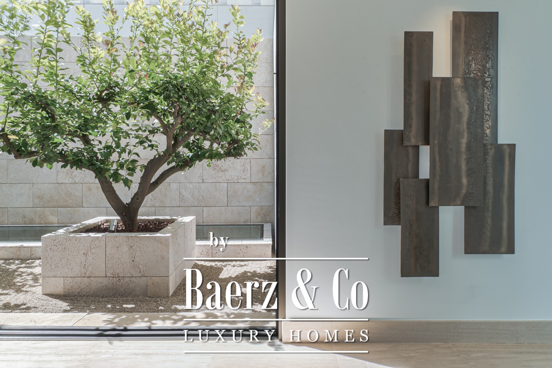 Пять изысканных спален, кухня и столовая открытого плана, а также просторные гостиные выдержаны в лаконичном и выверенном стиле. На нижнем уровне располагается зона велнес: здесь предусмотрены спа, тренажёрный зал, сауна и бассейн с холодной водой — истинное убежище для расслабления и приватных встреч. Ландшафтные сады, созданные Росьо Саинс де Розас, обрамляют виллу зрелыми оливами и средиземноморскими растениями, подчеркивая гармонию внутренних и наружных пространств.