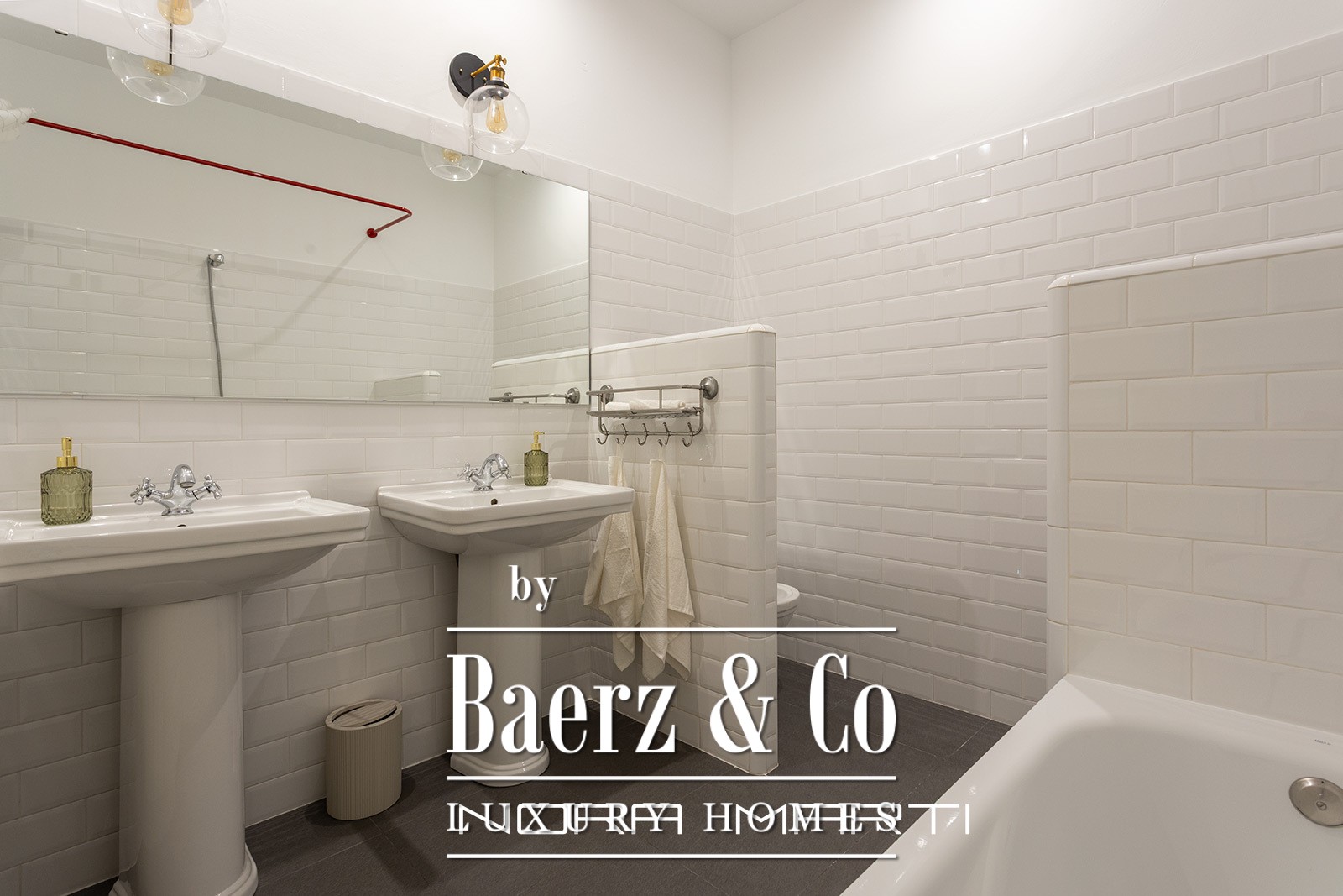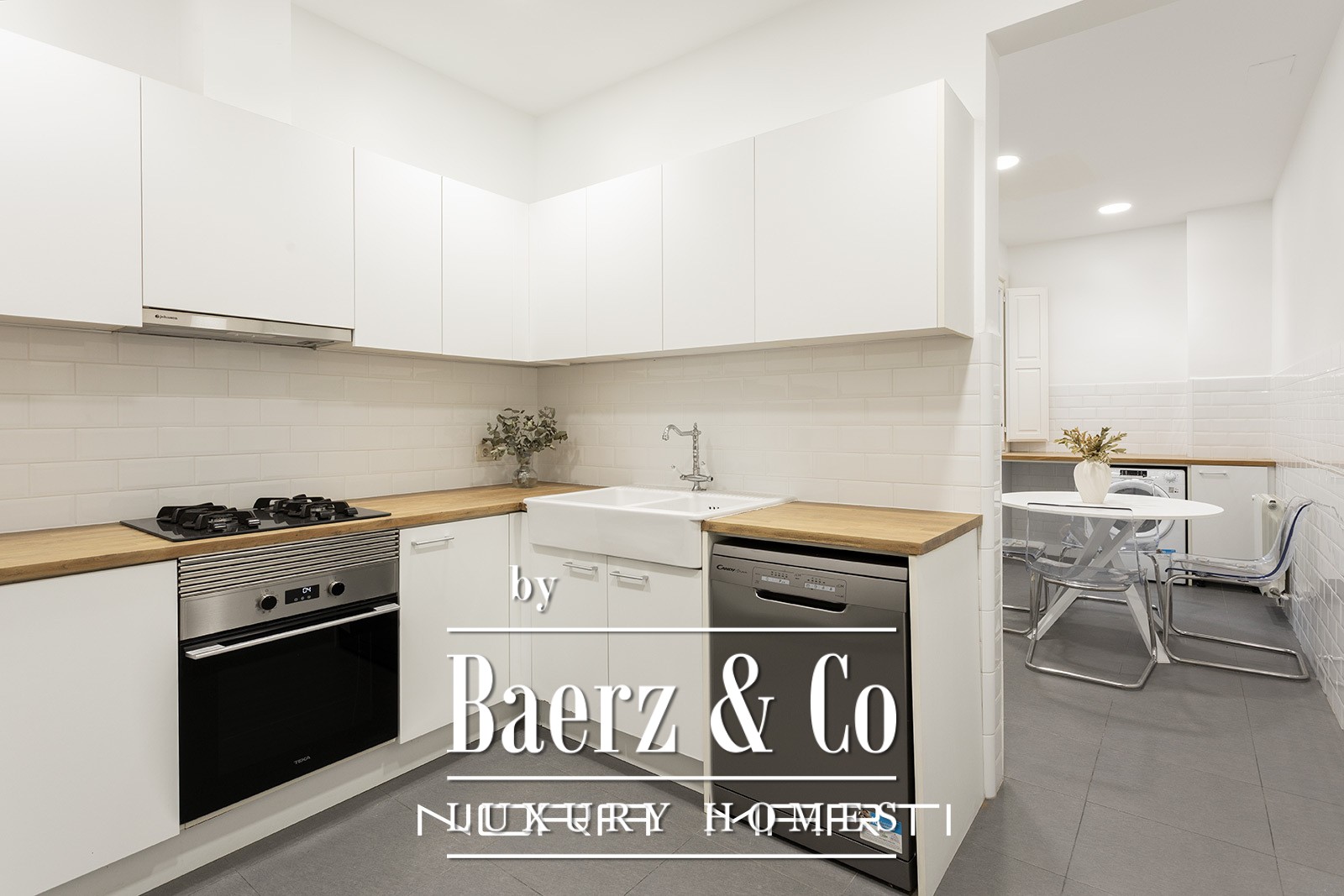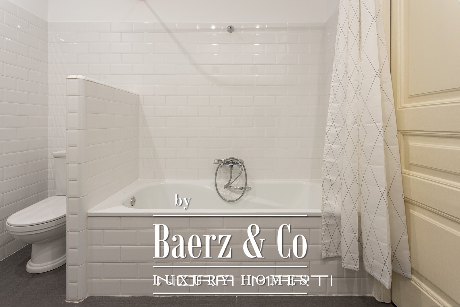 公寓面积152平方米,经过全面翻新,巧妙融合了当代美学与历史结构。室内采用精致现代的家具,营造出清晰统一之感,为低调的都市生活定下基调。布局设有三间卧室(包括一间双人房和两间单人房)及两间浴室,有效平衡了私密和社交空间。客厅的高大窗户为该年代的建筑特色,自然采光充盈室内,在优越的朝向和温润的实木地板的映衬下更显明亮。厨房设施齐全,并设有早餐区,提升了日常生活的舒适度。