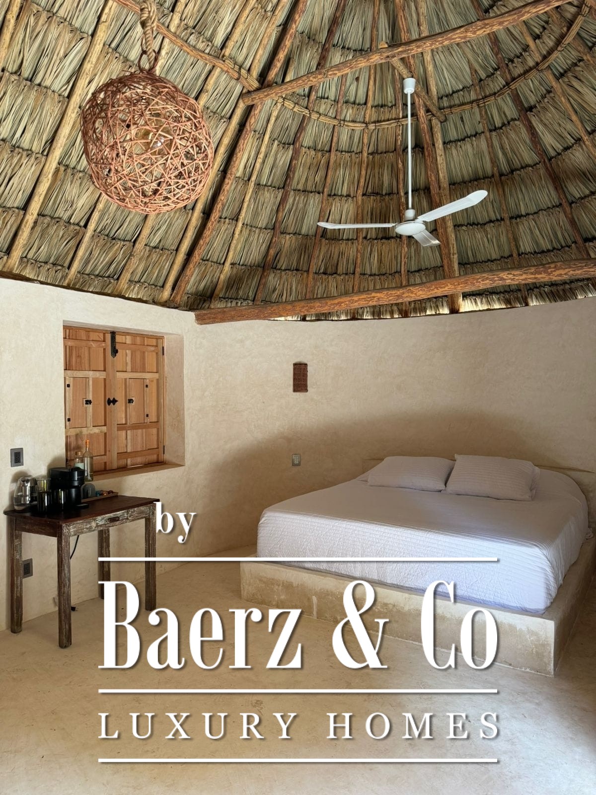 庄园核心由传统玛雅棕榈茅草屋组成,每一间房均经过悉心修复,配备超大床、独立卫浴和露台,秉承地区建筑风格。主楼于2004年翻新,保留原始石材结构,设专业厨房、宽敞储藏室、酒吧和带露台的奢华套房。相连的私家露台引景入境,无论是户外餐叙还是静享荫凉,都别有情致。