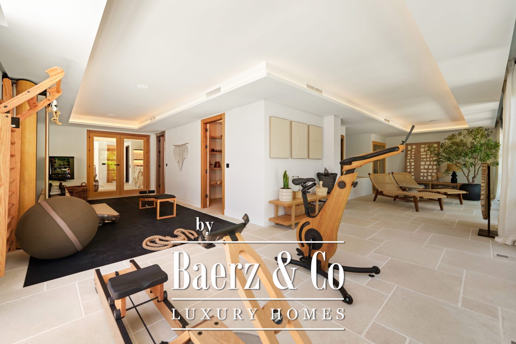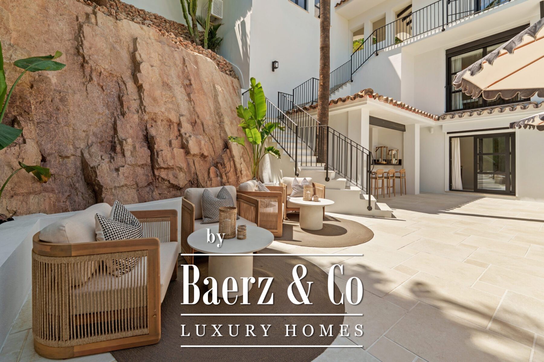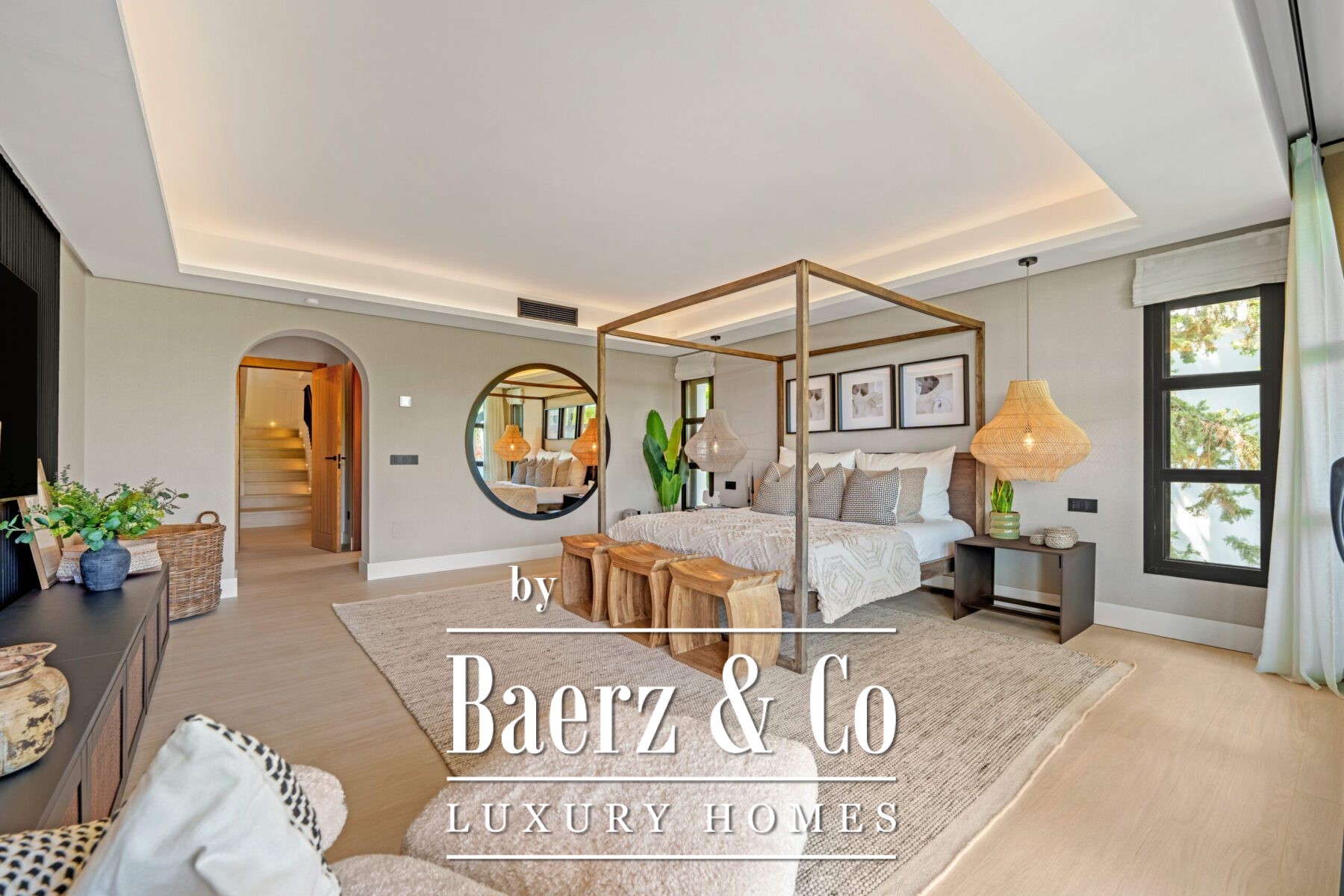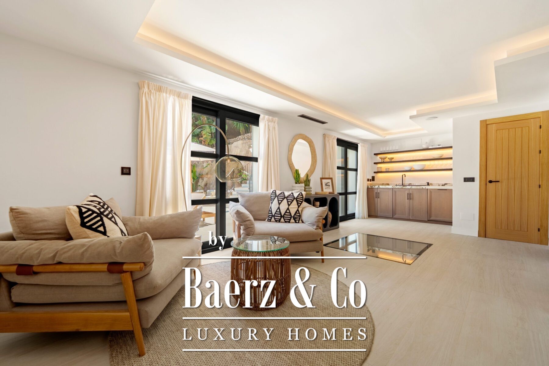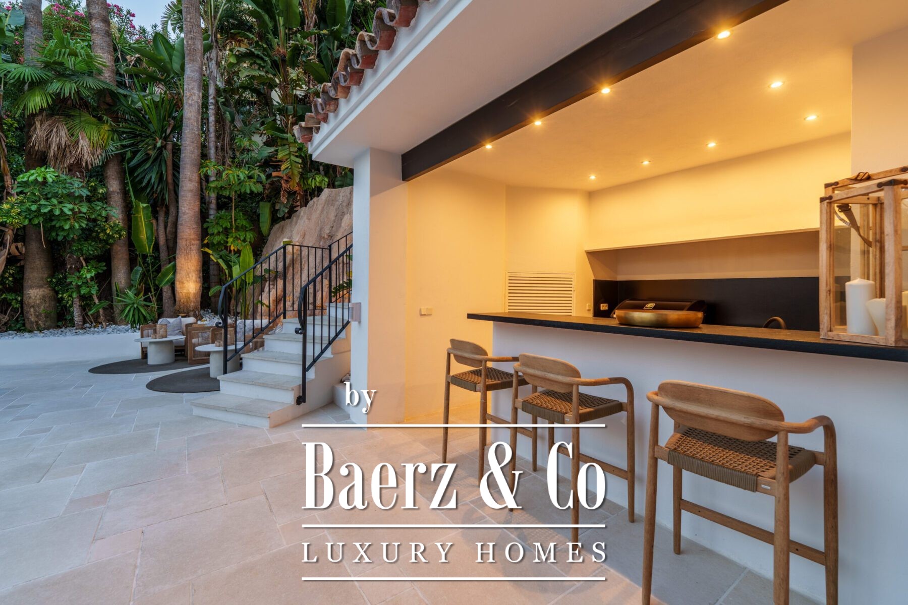 室外景观花园环绕私人泳池与下沉式休闲区,氛围灯光及遮阴空间适合静心冥想或社交聚会。多车位车库、安全系统,以及邻近高尔夫球场、海滩、Puerto Banús及马贝拉各类设施,使整体配套更加完善。