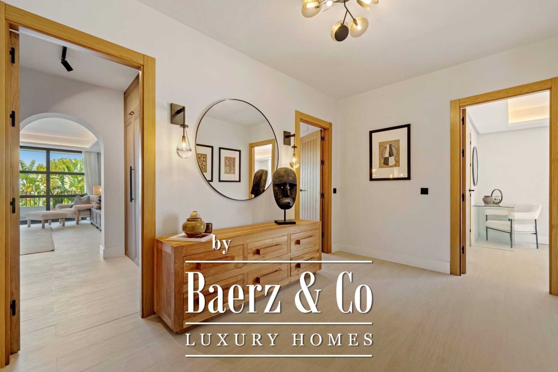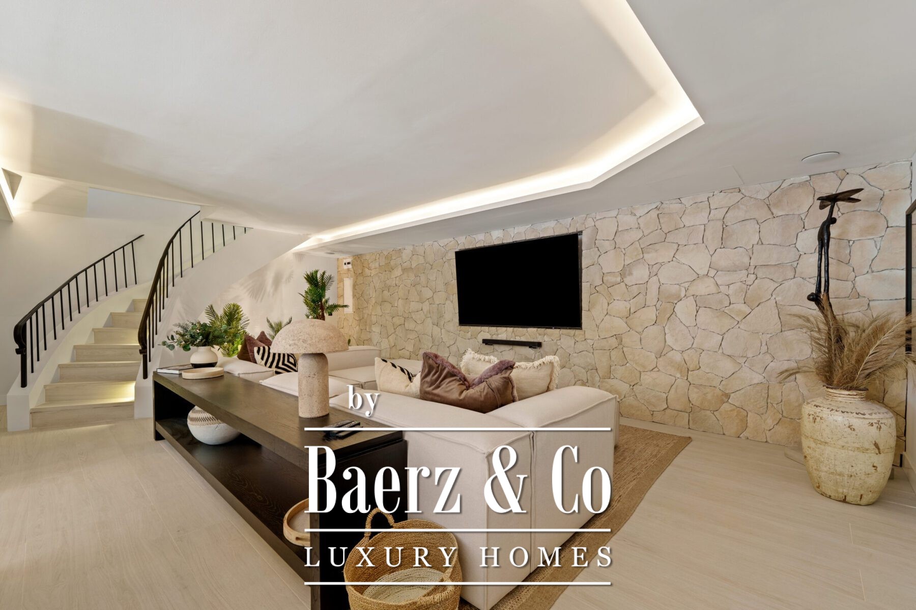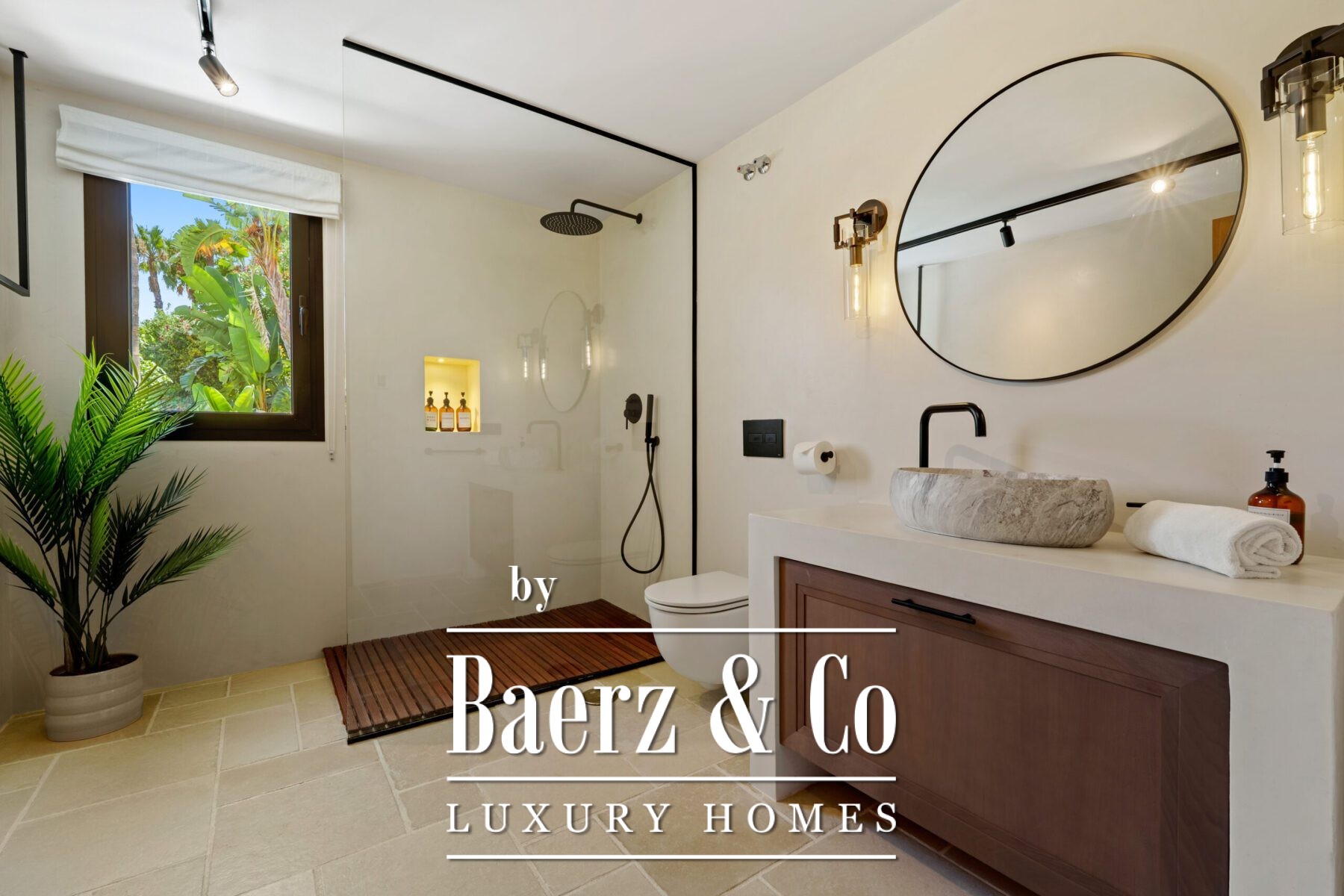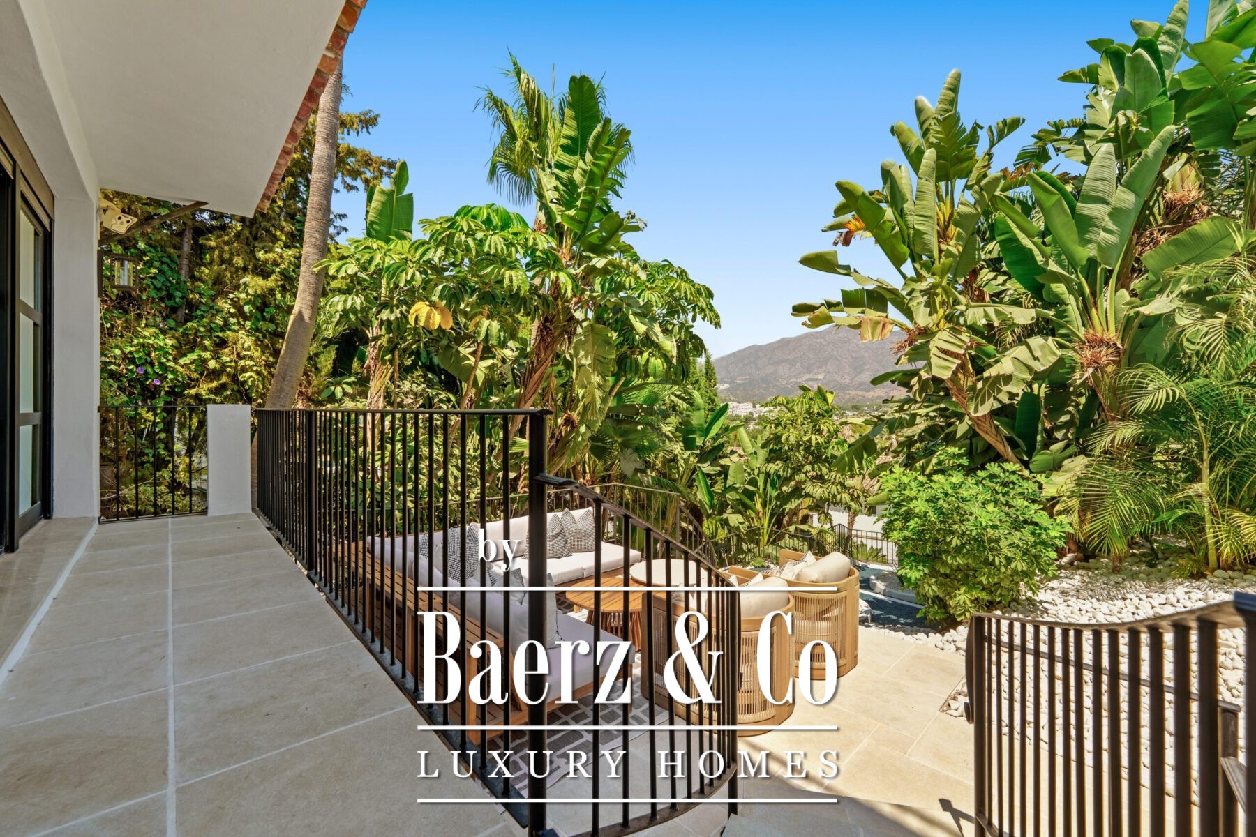 室外景观花园环绕私人泳池与下沉式休闲区,氛围灯光及遮阴空间适合静心冥想或社交聚会。多车位车库、安全系统,以及邻近高尔夫球场、海滩、Puerto Banús及马贝拉各类设施,使整体配套更加完善。