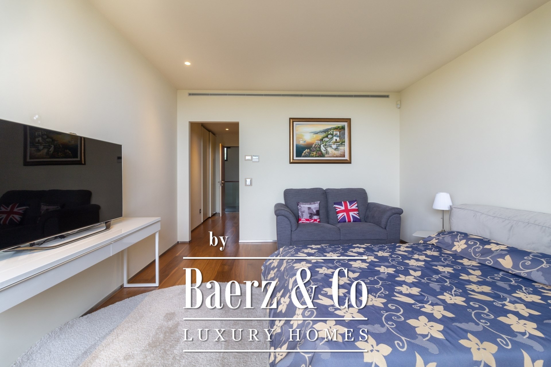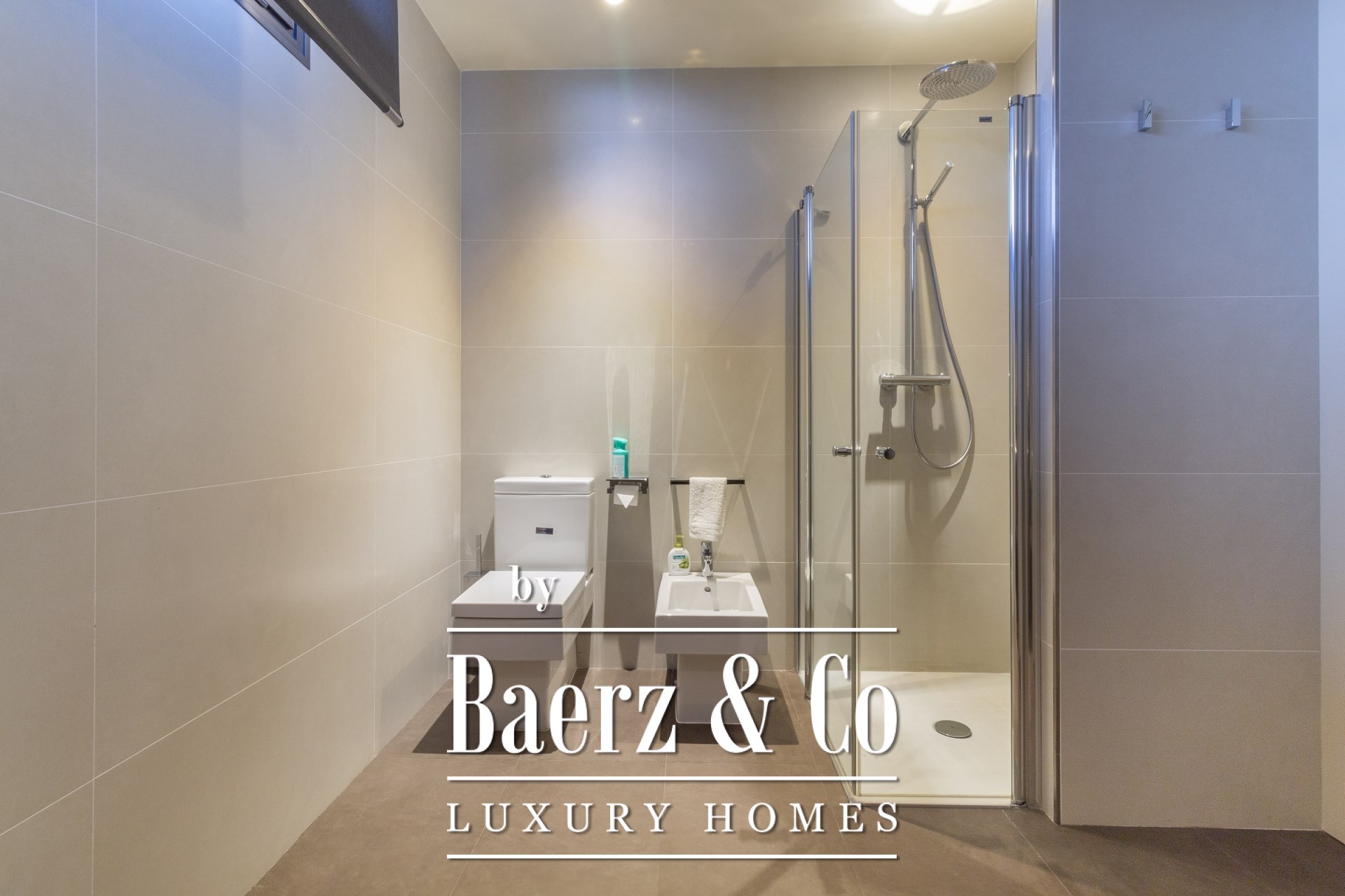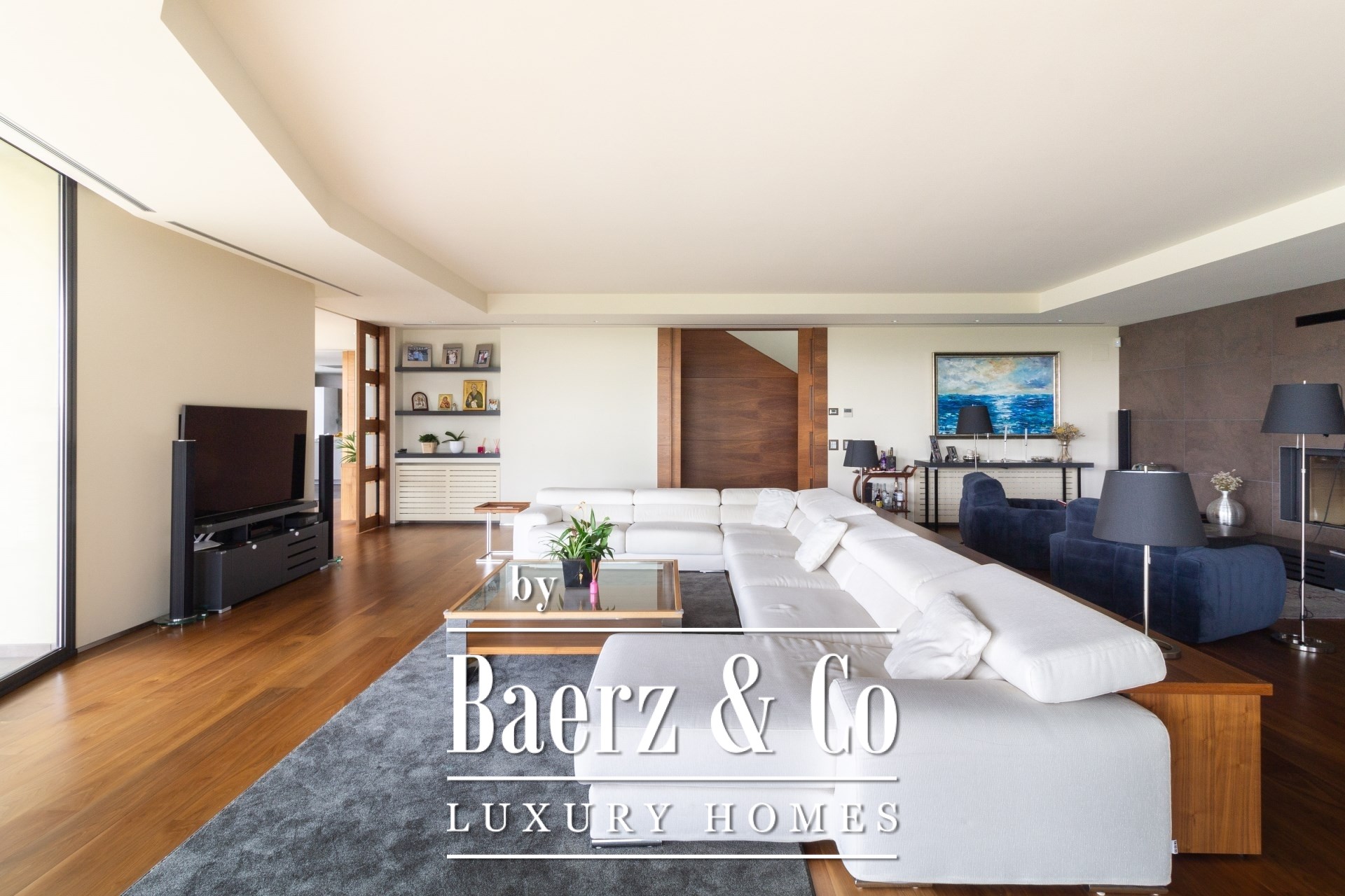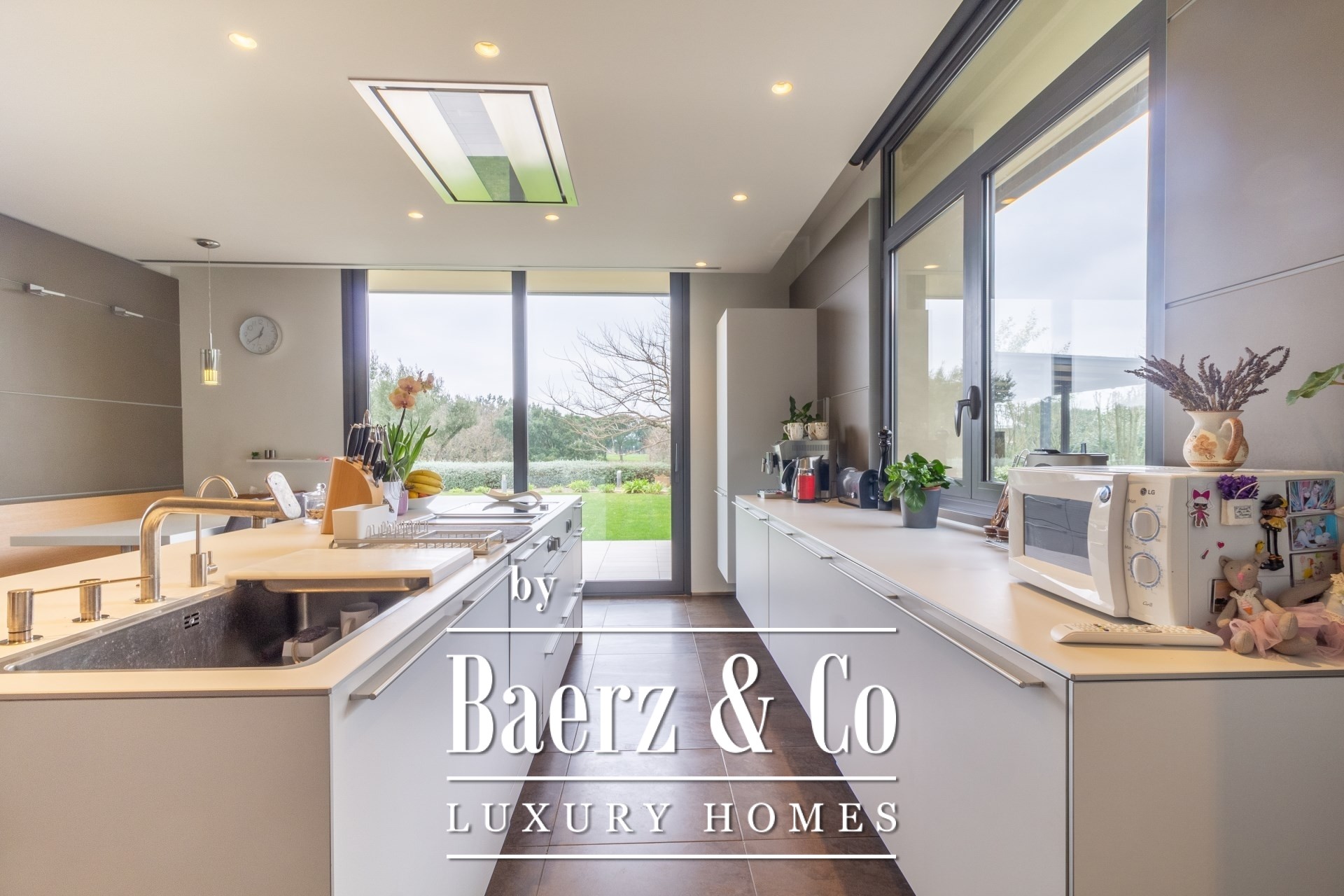 宽敞的玄关引入主层,宽阔的客餐厅沐浴在天然采光中,花园与泳池的开阔视野尽收眼底。带壁炉的阅读角为静谧思考营造氛围。厨房配备高端电器与卓越工艺,专为烹饪精致美食而设计。底层设有两间套房卧室,兼顾私密与便捷,并配有客用卫浴和独立办公室。
