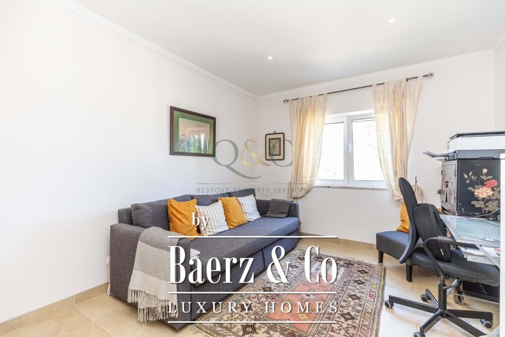 这座位于Santa Bárbara de Nexe的别墅,坐落于面积达2,280平方米的南向高地角地上,尽享开阔的乡村、海洋与山峦景致。别墅设计为全单层布局,室内面积为200平方米,最大限度地利用采光,中庭式开放客厅与餐区配有木柴壁炉。两组推拉门将室内空间与有遮蔽的露台、游泳池和带自动灌溉的低维护花园相连,双重电动大门保障私密性。